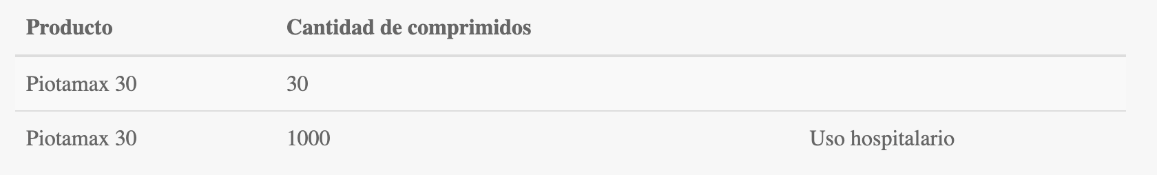 PIOGLITAZONA CLORHIDRATO 33,06 mg. PIOTAMAX está Indicado como adyuvante de la dieta y el ejercicio para mejorar el control de la glucemia en pacientes con diabetes tipo 2 (diabetes mellitus no insulino dependiente, DMNID).
